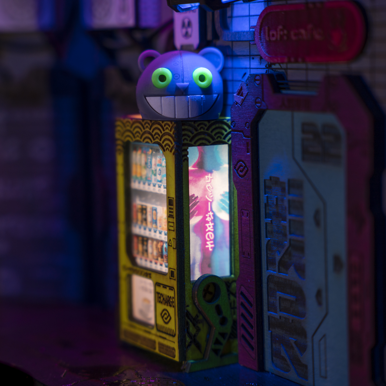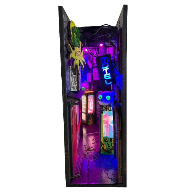 Featuring a vibrant cyberpunk alleyway, this bookend is a true work of art. Each detail has been carefully crafted to transport you to a different world. The use of unique illusions makes the alley appear deeper and more immersive. The diorama's theme gives a perfect touch of cyberpunk aesthetic to the room.